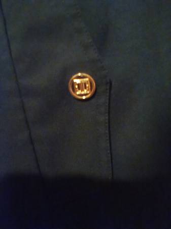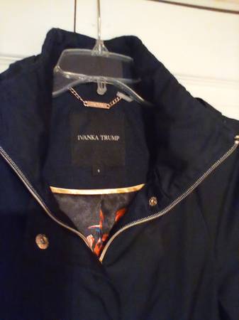 This jacket is in excellent unused condition. It is navy blue with front zipper and snaps. Also has a hoodie for bad weather. Also has a rose pattern liner. Please see all photos Anyone interested please call any day of the week before 9pm. Phone number is show contact info
