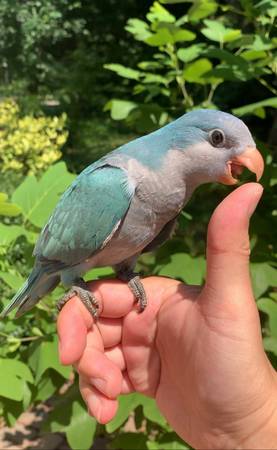 Beautiful Baby Blue Quaker Parrot - Gender is unknown. To be fully weaned in August. No cage included. *** Due to lack of attention and handling, it is a little shy now. Price is now Reduced to $380, firm. ***