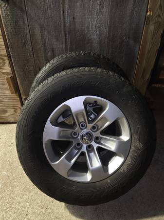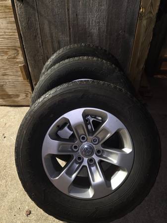 Set of 4 Dodge Ram rims, will probably also fit on a Jeep Wagoneer, in good condition. Includes tires. Some tread left. 275 65 R18