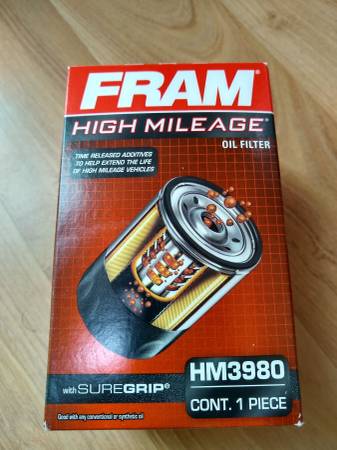 NEW in unopened sealed box FRAM High Mileage Oil Filter # HM3980 with SureGrip Oil Filter has time released additives to help extend the life of high mileage vehicles.