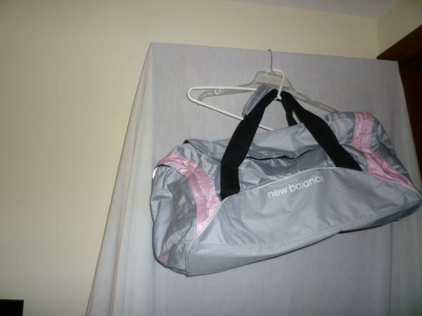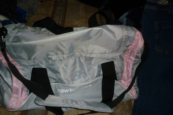 New, New Balance Gray and Pink Trim Large Sports Bag Carry Handles and Shoulder Strap Like New, Broadneck Field and Track Sports Bag With Carry Handles and Shoulder Strap, $15.