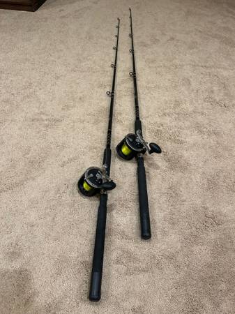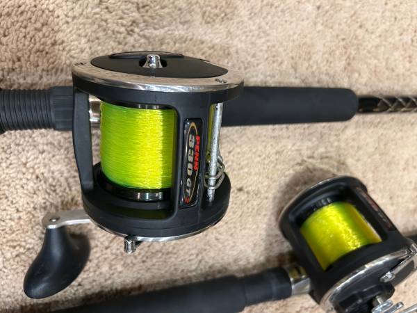 Two PENN COMBO Rod and Reel Sets for Sale. Slammer Rod SL205C66. 330 GT Reel. never used. Both rod and reel Sets included, offered for $250.