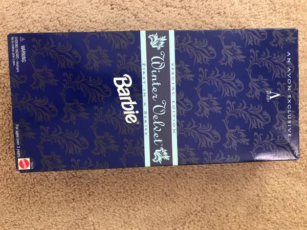 New In Box Avon exclusive Barbie Winter Velvet Barbie never removed from box. would make a good Christmas gift for a Barbie fan. $45.00 cash