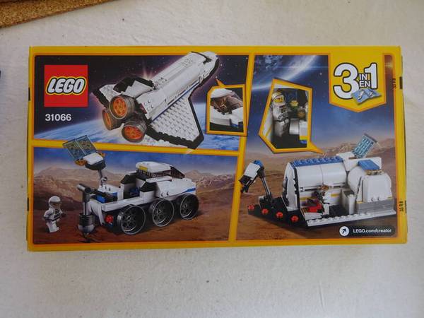 Lego set 31066, Creator 3in1, Space Shuttle Explorer, new, sealed box, 285 pieces. I sell only in person, local (Annapolis, Baltimore, DC area) for cash. Set contains small parts, not for children...