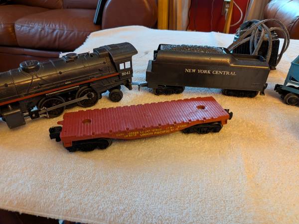 Vintage Lionel Steam Engine, Coal Car, Hopper, Flat Car, Caboose and Transformer for sale. $50