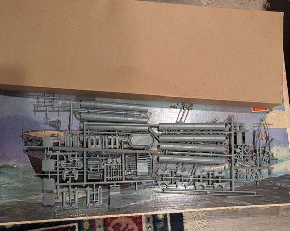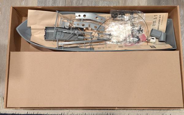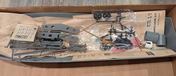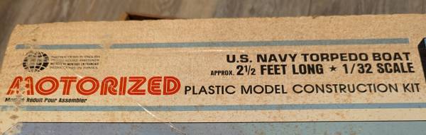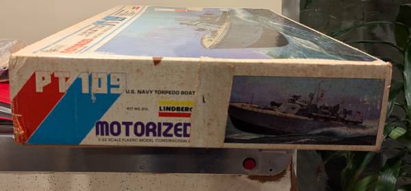 PT 109 Lindberg # 812 Motorized Model Kit - suitable for radio control. Had this stored for past 30+ years - box has age wear - looks complete - did not count every part. Photos of actual item....