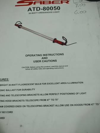 Saber, automotive under hood work light. This light is in like new condition. Retails for $130 Asking $60 OBO Ron Leave message or text Local pickup in Annapolis