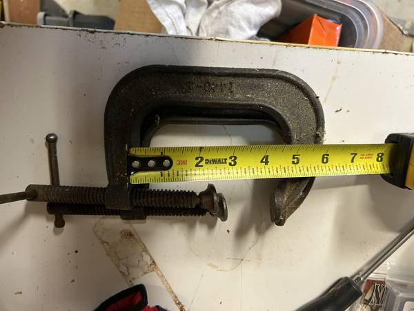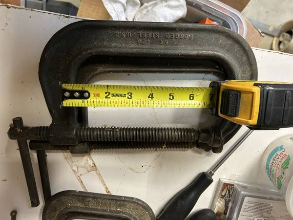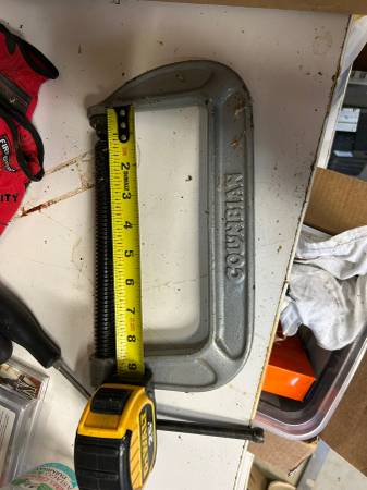 Propane Convection Heater, used for 4 hrs. with supply tube and regulator. 200,000 - 75,000 btu. Old heavy duty C clamps-(2) 4" (2) 6" (1) 8" great shape.