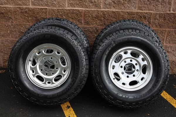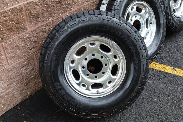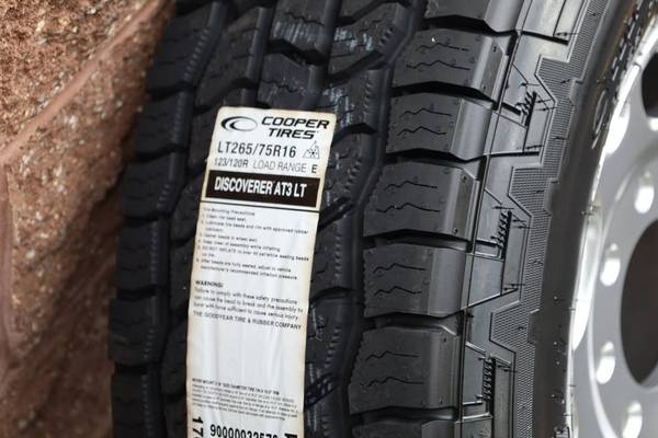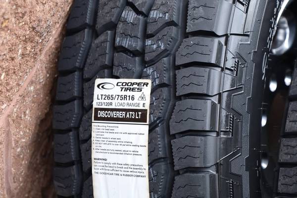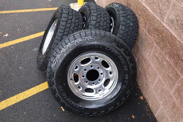 Set of 4 - New 16'' Polished aluminum PY0 wheels mounted on Cooper AT3s 265/75/16s Cooper AT3 new tires mounted and balanced, come with center caps, wheels and tires have 0 miles on them 8x6.5 -...