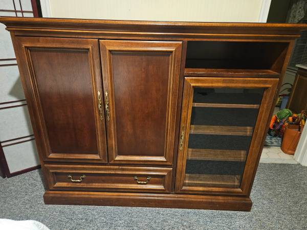 *TV/Storage Cabinet *Display Cabinet w/Glass Shelves & bottom drawers *Sofa Furniture in very good shape; Sofa and TV Cabinet are downstairs; Display Cabinet is upstairs