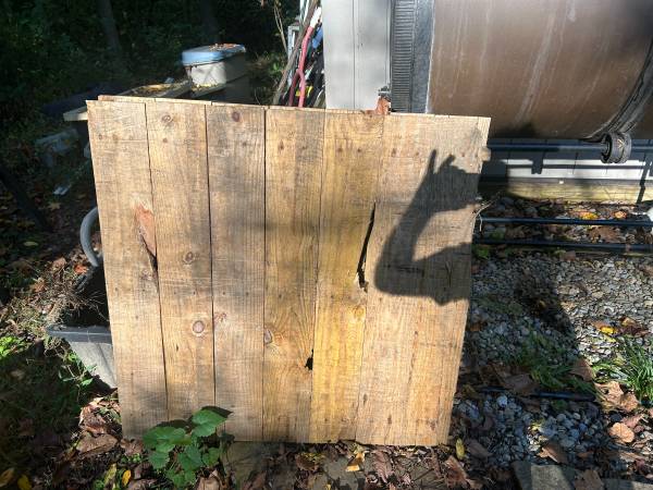 Two wooden Pallets #1: 76 x 44 #2: 40 x 40 Text, please (I might miss your e-mail) First COME, first served (will not hold).